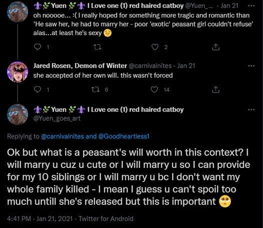 This already tells you that their relationship was not healthy. The powerful, immature 22-year-old king conquered a country and saw someone he wanted from it. Now, there is confirmation that Isolde had accepted Viego of her own will, but another user makes a point in the thread: what is a peasant's will even worth in this context? To which Rosen had no response. [x]